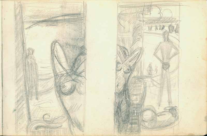 Das Skizzenbuch 3 umfaßt ca. den Zeitraum zwischen 1950 bis 1953. Es beinhaltet Zeichnungen in Bleistift und Tusche sofern nicht anders vermerkt. |