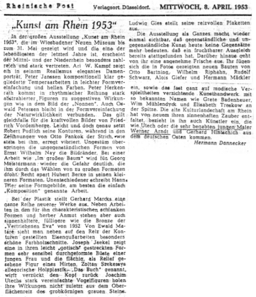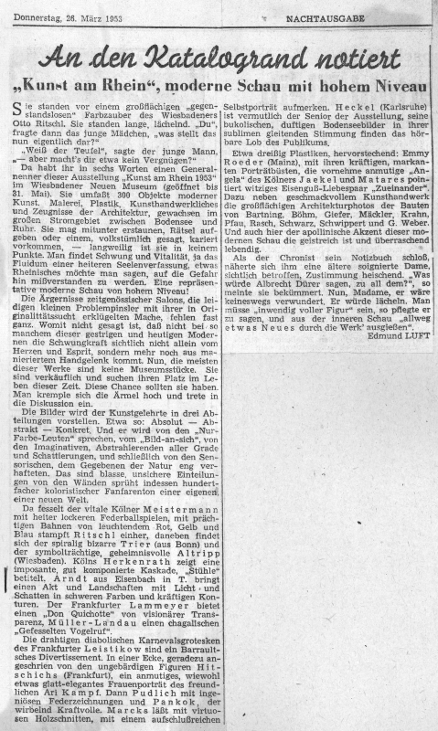 WIESBADENER TAGBLATT Zusammenklang der Künste Die Ausstellung "Kunst am Rhein 1953"