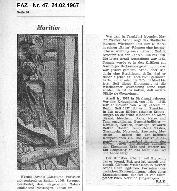 23 Kleine maritime Variation, 1965; Papier auf Styropor, Pressungen, Collage, Dispersionsfarbe - 34 x 72 cm