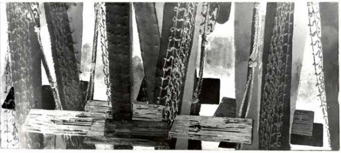 22 Masten - Stricke - Netze, 1965; Dispersionsfarbe, Stricke, Netze - 44 x 100 cm