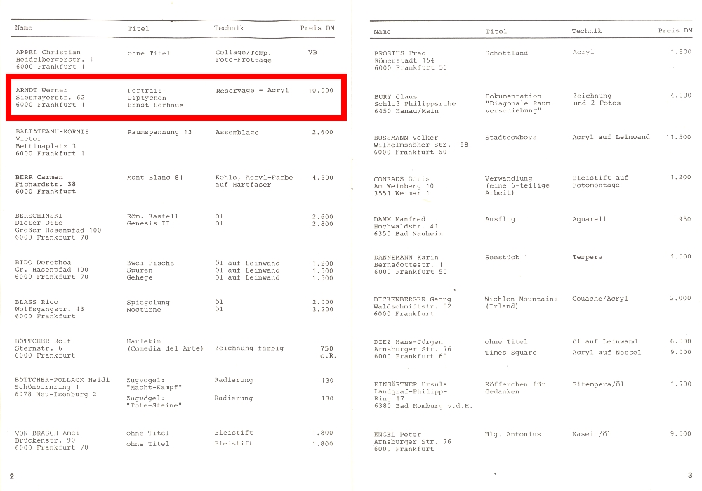 Ausstellungsverzeichnis (Auszug) - W.Arndt rot eingerahmt