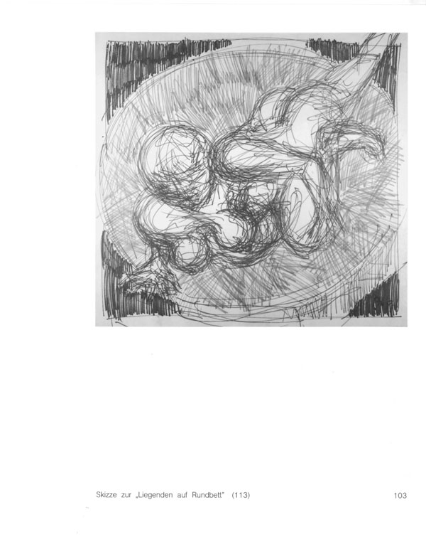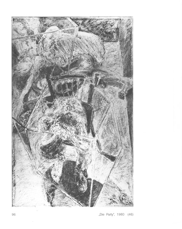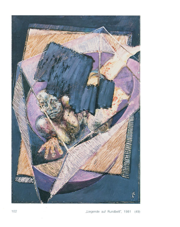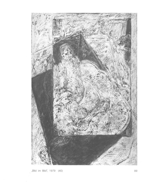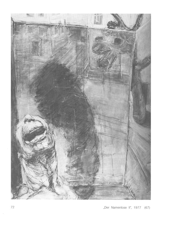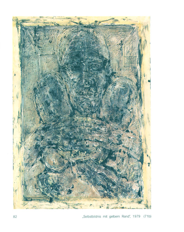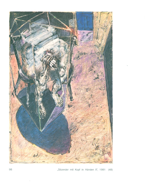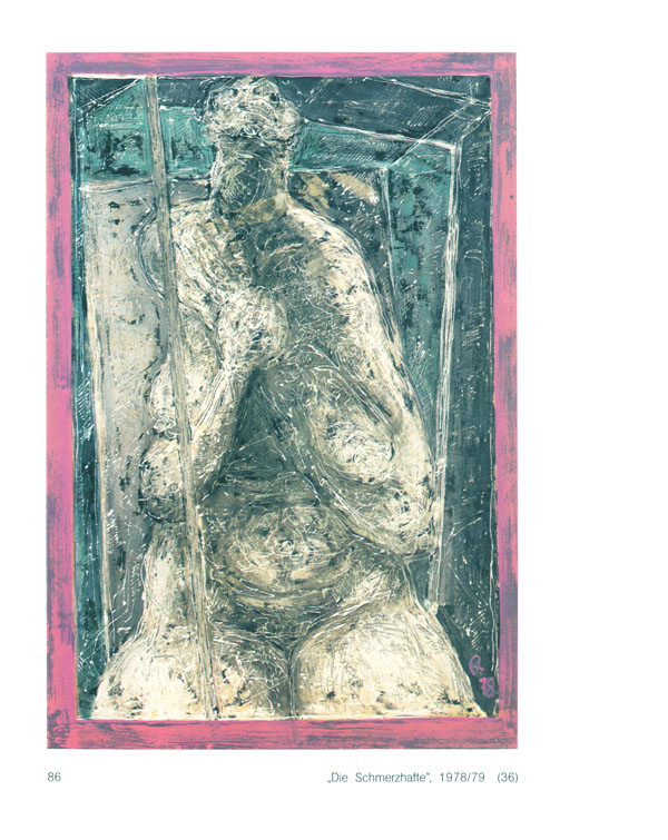 072 "Der Namenlose II", 1977 073 "Galgenbaum" (nach dem "Cager mit Klavierstuhl"), 1978 074 "Cager in der Stadt, 1977 075 "Cager Silo", 1977 076 "Paar im Cager I" (Vergewaltigung I), 1978 077 "Paar im Cager II" (Vergewaltigung II), 1978 078 Zu Cager 22 ("Cager: Liegender Rücken mit Händen"), 1978 079 "Zwei Cager" 1977 080 "Kopfvariation I", 1977 081 "Kopfvariation II", 1977 082 "Selbstbildnis mit gelbem Rand", 1979 083 "Selbstbildnis mit Cager", 1979 084 Skizze nach dem "Kauernden" 085 "Mann im Rollstuhl", 1979 086 "Die Schmerzhafte", 1978/79 087 "Sitzender, Kopf in den Händen", 1979 089 "Bild im Bild", 1979 091 "Frau mit zwei Schatten", 1979 092 "Portrait-Diptychon Ernst Herhaus", 1981 093 "Portrait-Diptychon Ernst Herhaus", 1981 094 Leerseite 095 "Sitzende in dunklem Käfig", 1979 096 "Die Party", 1980, 097 "Die Trinkerin", 1980 098 "Sitzender mit Kopf in Händen II". 1981 099 "Der Aussteiger", 1981 100 Skizze zum "Aussteiger", 5.I.81 101 Skizze zum "Aussteiger", 29.IV.81 102 "Liegende auf Rundbett", 1981 103 Skizze zur "Liegenden auf Rundbett", 1981 104 Skizzen zur "Lachenden", 1981 105 "Die Lachende nach Vangi", 1981