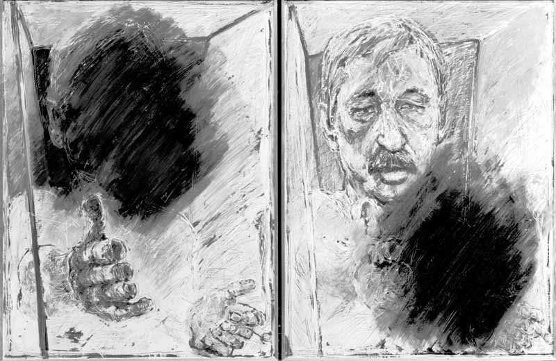 Porträt-Diptychon Ernst Herhaus"; 1981, je Flügel 130 x 100 cm, Mischtechnik