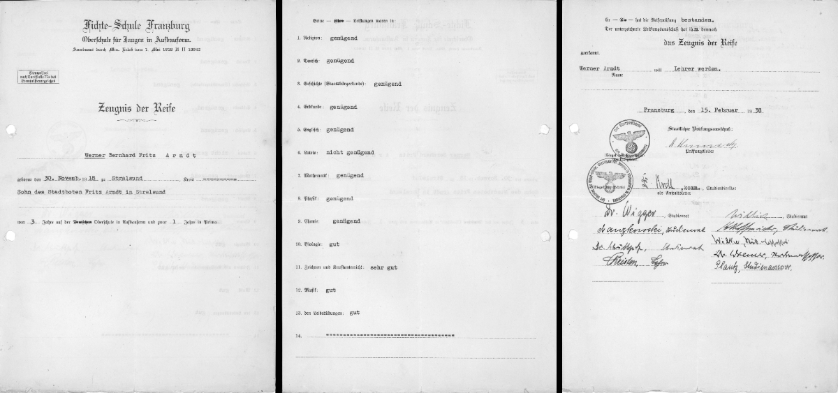 Abiturzeugnis von Werner Arndt 1938