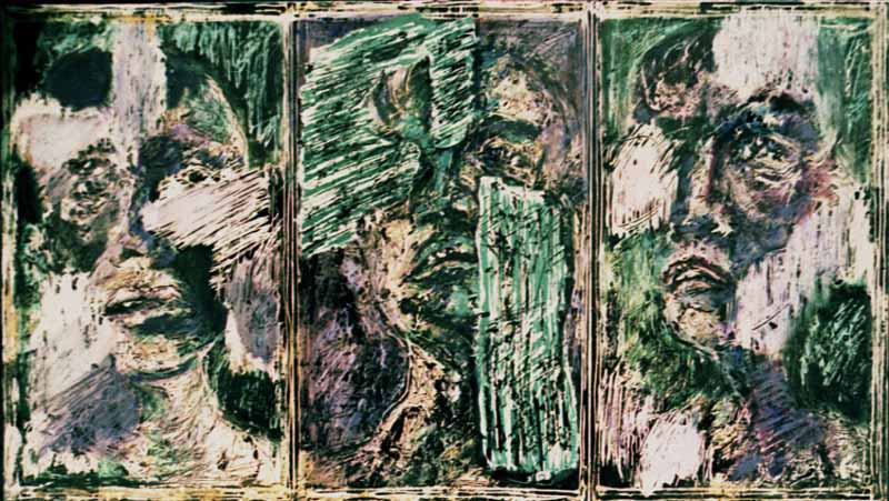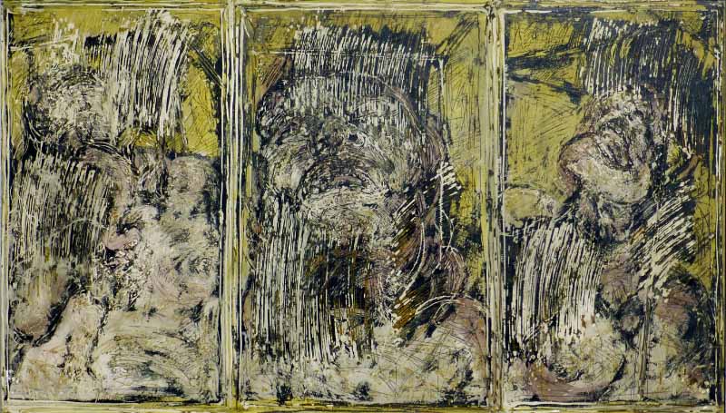 Triptychon - Porträt II; 1880, Maße: 50 x 88 cm; Misch-/Schabetechnik (Öl/ Acryl) auf grundierter Türplatte |