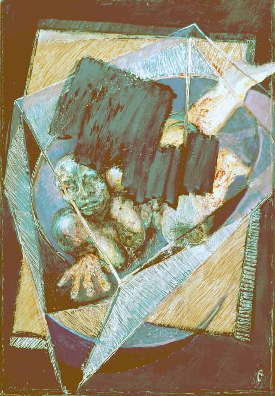 Triptychon - Porträt III; 1880, Maße: 52 x 88 cm; Misch-/Schabetechnik (Öl/ Acryl) auf grundierter Türplatte |