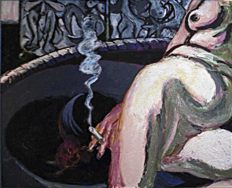 Die Trinkerin; 1880, Maße: 160 x 90 cm; Misch-/Schabetechnik (Öl/ Acryl) auf grundierter Tischlerplatte |