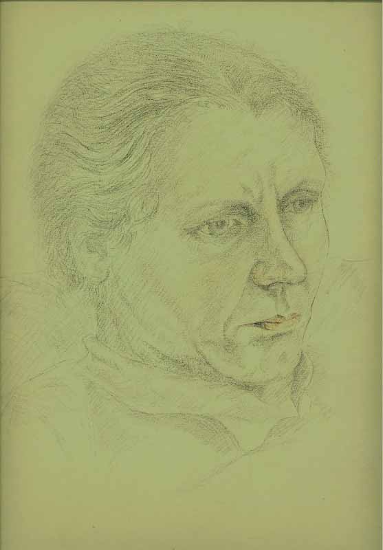 05 "Porträt von Frau Thode (seiner Großmutter) "; 1938, Maße: 30 x 26 cm; Bleistift auf gelbem Karton