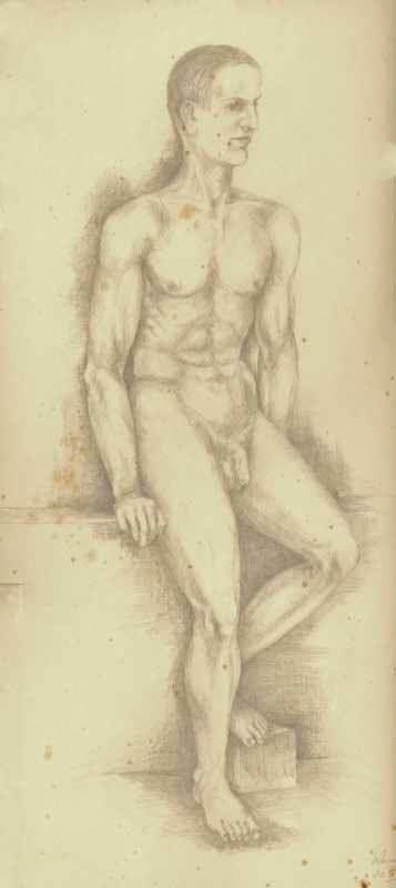11. Männlicher Akt, halbsitzend, von vorne ; 1938,