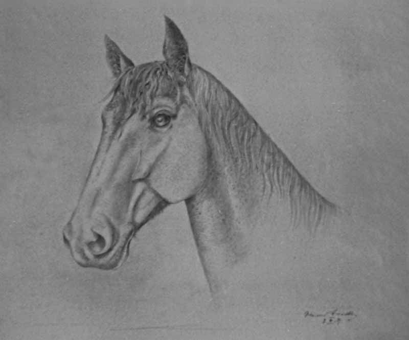14. Pferdekopf ; 1939, Maße: 39 x 42 cm; Bleistift auf beigem Karton