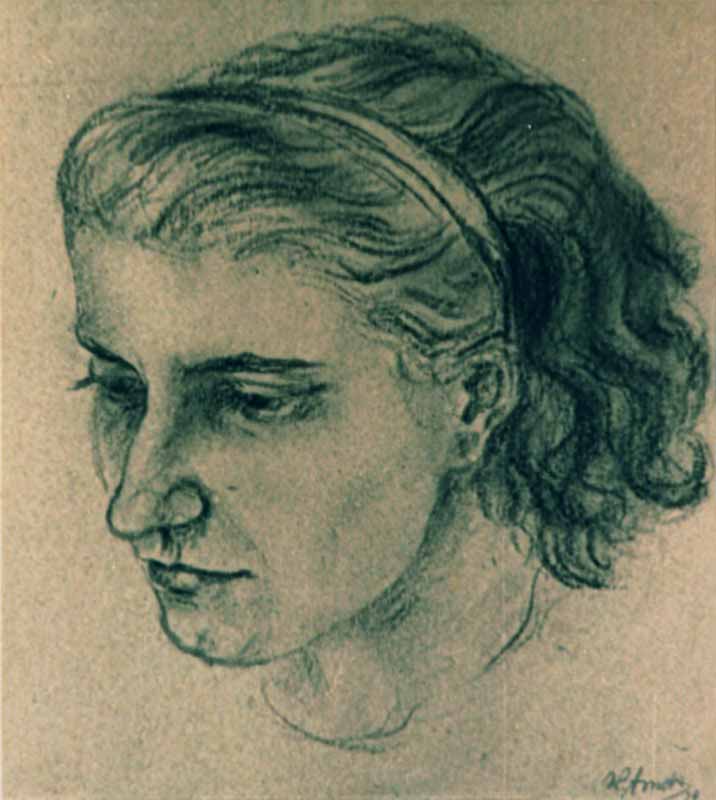 20. Porträt A. A. mit Haarreif ; 1939, Maße: 25 x 23 cm; Bleistift auf beigem Karton