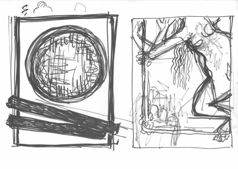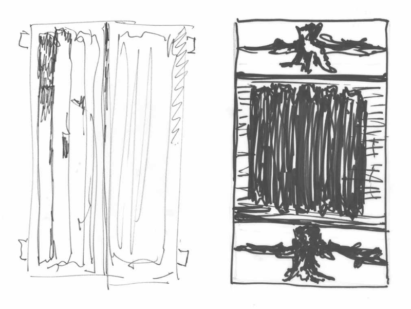 06. Feuerbild mit versteinertem Seil, (2 Entwürfe) 1968; Maße: 23,5 x 36,5 cm, |