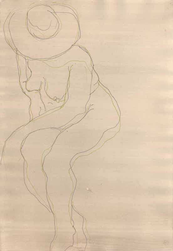 27. Weiblicher Akt mit Hut, sitzend; 1984, Maße: 48,0 x 64,0 cm; |