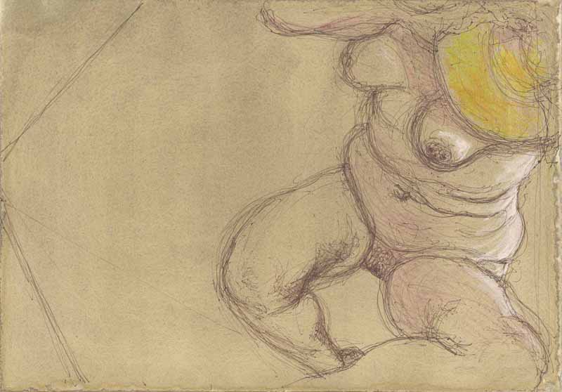 07. Weiblicher Akt sitzend mit Hut und hellem Schatten; 1984, Maße: 49 x 50 cm; |