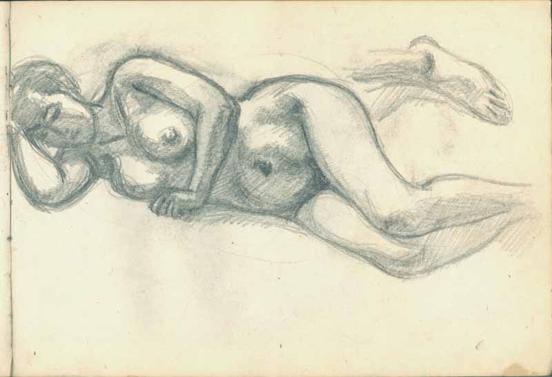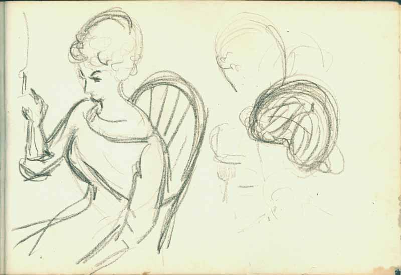 umfaßt ca. den Zeitraum zwischen 1950 bis 1953. Es beinhaltet Zeichnungen in Bleistift und Tusche sofern nicht anders vermerkt. Es ist 33,0 x 22,5 cm groß. |