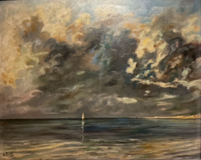 W.A. war, sofern das Bild von ihm gemalt wurde, was als sehr wahrscheinlich anzunehmen ist, 17 Jahre alt. Es ist sehr stark angelehnt an das Bild "Mönch am Meer", 1808-10, von Caspar David Friedrich (siehe unten)