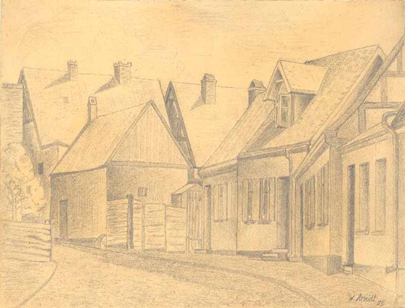 Dorfstraße an der Bergstraße, 1937, 24 x 32 cm, Zeichnung, Bleistift auf Karton
