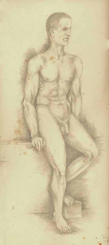 Akt, männlich, 1938, 48,5 x 30,5 cm, Zeichnung, Bleistift auf gelbem Karton