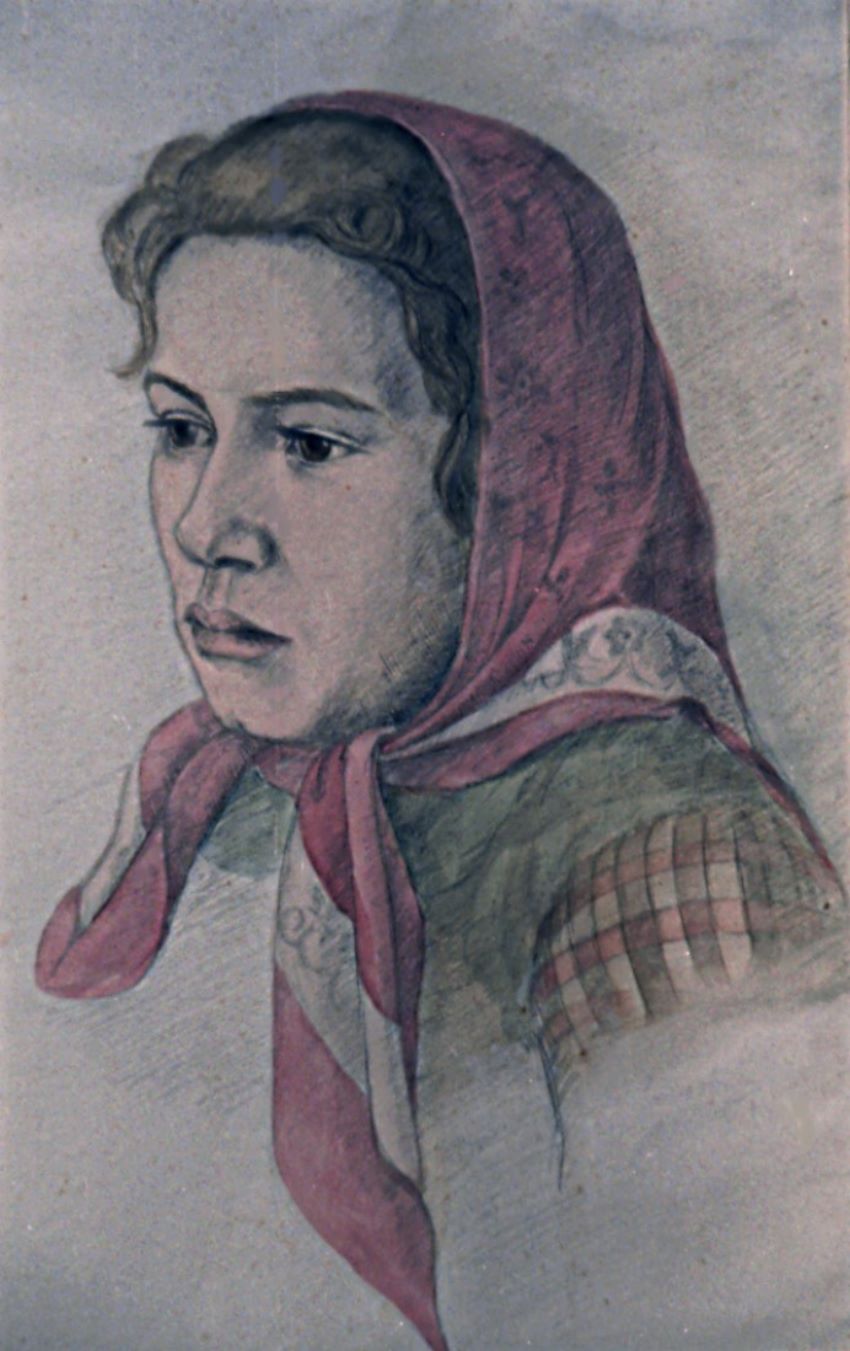 Werner Arndt - Porträt einer jungen Frau mit rotem Kopftuch - 1938