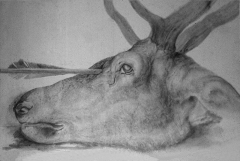 Hirschkopf mit Pfeil, 1939, Maße unbekannt, Zeichnung: Bleistift
