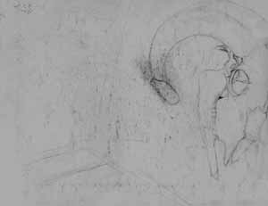 Hirschkopf mit Pfeil, 1939, Maße unbekannt, Zeichnung, Bleistift, Verbleib unbekannt; Abb.: von Foto, Reg.Nr.: Z39-30/21a