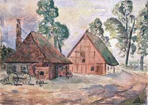 Dorfansicht von Framin in Pommern , 1939, Maße: 24 x 32 cm, Aquarell auf Zeichenpapier, sign. u. dat. u.r. "WA 39", auf Passepartout: "Dorfansicht zu Framin in Pommern",