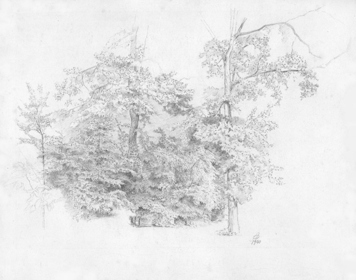 Laubbäume, 1940, 35 x 42 cm, Zeichnung, Bleistift auf beigem Karton