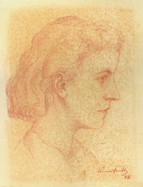 Porträt Anne Arndt, 1940, 38 x 23 cm, Zeichnung, Rötel auf gelblich grundiertem Karton