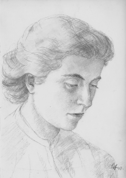 Porträt Anne Arndt, 1940, 30 x 22 cm, Zeichnung, Bleistift auf gelblich grundiertem Karton