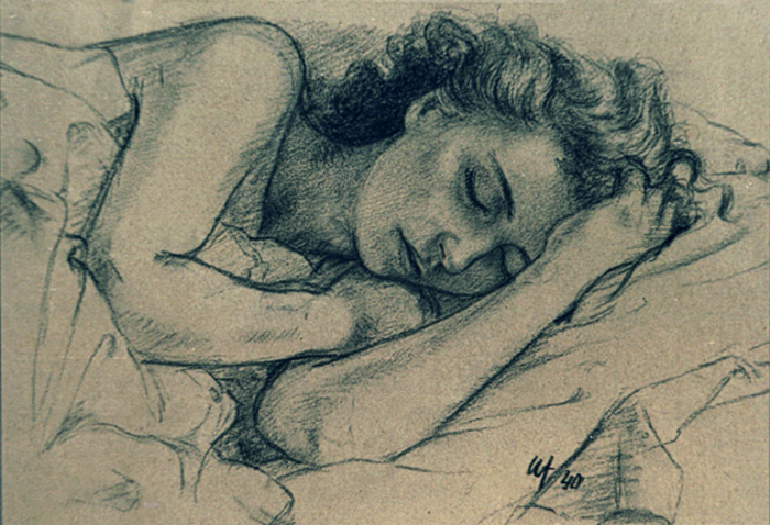 Porträt Anne Arndt, schlafend, 1940, 28 x 40 cm, Zeichnung, Kohle auf beigem Karton
