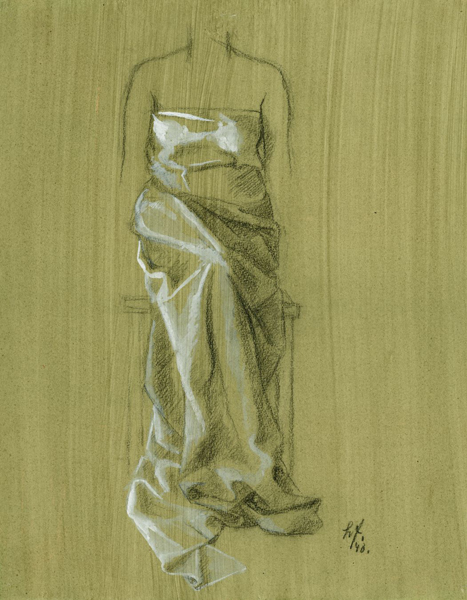 Studie eines Kleides, 1940, 37 x 20 cm, Zeichnung, Bleistift mit Tempera aufgehellt, auf getöntem Karton