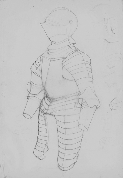 Ritterrüstung, 1940, 61 x 41 cm, Zeichnung, Bleistift auf Zeichenpapier