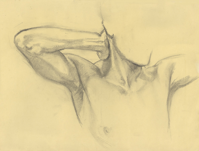 Armstudie, männlich, 1940, 42 x 55 cm, Zeichnung, Bleistift auf gelb-beigem Zeichenpapier