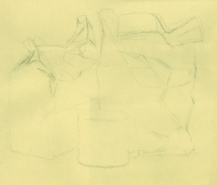 Stilleben, 1940, 28 x 43 cm, Zeichnung, Bleistift auf gelb-beigem Zeichenpapier