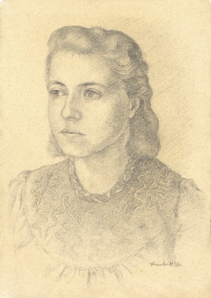 Porträt einer jungen Frau in festlicher Bluse, 1941, 51 x 37 cm, Zeichnung, Bleistift auf beigem Japanpapier