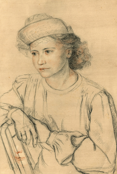 Porträt von A.A. mit Schleierhütchen, 1941, 59 x 41 cm, Zeichnung, Kreide, Kohle auf beigem INGRES-Büttenpapier