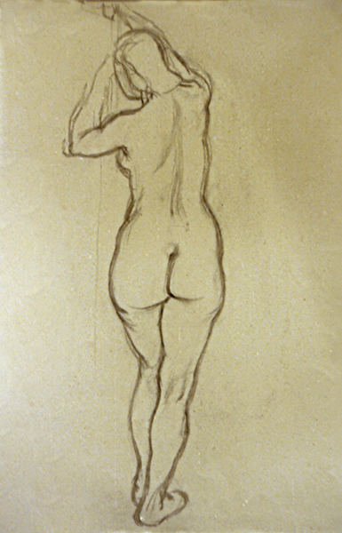 Akt, weiblich, stehend, Rückenansicht, 1941, 60 x 40 cm, Zeichnung, Kohle auf beigem Karton
