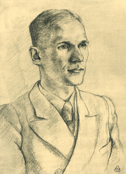Porträt eines Freundes, 1941, Maße unbekannt, Zeichnung, Kohle auf beigem Büttenpapier