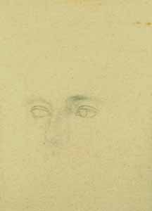 Skizze von Frauenaugen, 1941, Maße: 51 x 37 cm, Zeichnung, Bleistift coloriert auf beigem Japanpapier, Erbengemeinschaft Arndt Reg.Nr.: Z41-26/07
