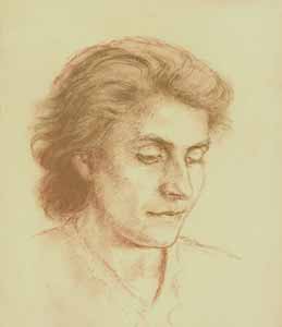 Porträt von A.A., 1941, Maße: 30 x 55 cm, Zeichnung, Rötelstift auf hellbeigem Karton sign. u. dat. ru "W A 1941", Erbengemeinschaft Arndt Reg.Nr.: Z41-26/12