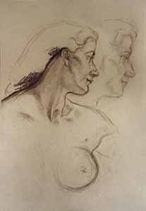 Porträt von A.A., Kopf seitlich, 1941, Maße: 60 x 40 cm, Zeichnung, Kohle auf beigem Karton, Erbengemeinschaft Arndt Reg.Nr.: Z41-24/10
