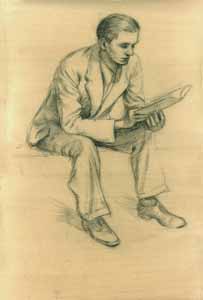Lesender junger Mann, 1941, Maße: 45 x 32 cm, Zeichnung, Kohle auf mit Schwamm grundiertem Büttenpapier Erbengemeinschaft Arndt Reg.Nr.: Z41-25/28