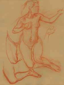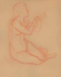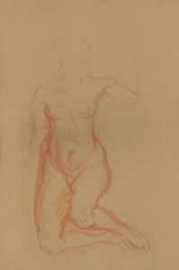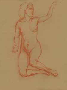 Akt, weiblich, kniend, 1941, Maße: 58 x 44 cm, Zeichnung, Rötelstift auf braunem Zeichenblockpapier Erbengemeinschaft Arndt Reg.Nr.: E41-24/04