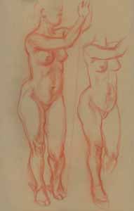 Zwei Akte stehend, frontal, 1941, Maße: 60 x 40 cm, Zeichnung, braune Kreide auf beigem Karton, Erbengemeinschaft Arndt Reg.Nr.: E41-24/13
