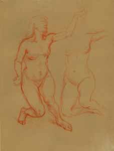 Zwei Akte, weiblich, 1941, Maße: 58 x 44 cm, Zeichnung, Rötelstift auf braunem Zeichenblockpapier, Erbengemeinschaft Arndt Reg.Nr.: E41-25/30