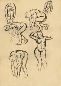 Akte in verschiedenen Stellungen, 1941, Maße: 60 x 40 cm, Zeichnung, Schwarze Tusche auf beigem Karton, Erbengemeinschaft Arndt Reg.Nr.: E41-24/12