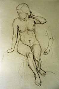 Akt, weiblich, sitzend, Vorderansicht, 1941, Maße: 60 x 40 cm, Zeichnung, Braune Kreide auf beigem Karton, Erbengemeinschaft Arndt Reg.Nr.: E41-24/15