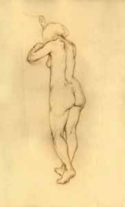 Akt, weiblich, stehend, Rückenansicht, 1941, Maße: 60 x 40 cm, Zeichnung, Braune Kreide auf beigem Karton, Erbengemeinschaft Arndt Reg.Nr.: E41-24/17