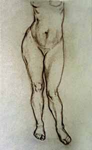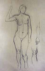 Akt, weiblich, stehend mit Detailstudien von Arm u. Knie, 1941, Maße: 60 x 40 cm, Zeichnung, Kohle auf beigem Karton, Erbengemeinschaft Arndt Reg.Nr.: E41-24/11-56