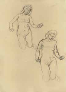 2 Akte kniend, Vorderansicht, 1941, Maße: 60 x 40 cm, Zeichnung, Kohle auf beigem Karton, Erbengemeinschaft Arndt Reg.Nr.: E41-24/32-54